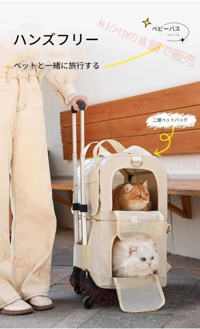 ペット キャリーバッグ 二層 手提げ ショルダー掛け 取り外し メッシュ 型崩れ防止 簡単組み立て おしゃれデザイン ペットとのお出かけ 安心感 独立スペース ペットカート 携帯便利 大容量 360度回転キャスター 軽量化