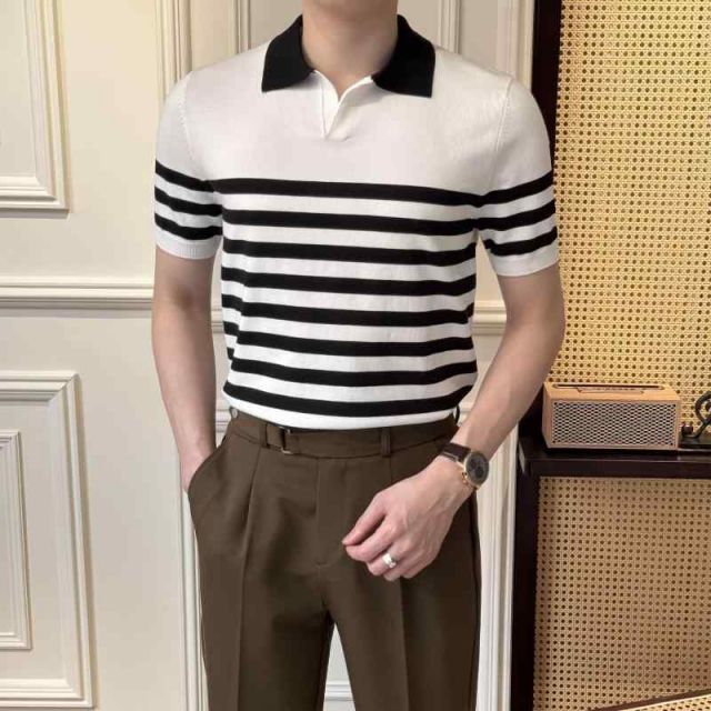 メンズ ファッション 服 男性用 オシャレ シンプル 大人 かっこいい 大きいサイズ ストリート 紳士服 夏 ストライプ 半袖 ポロシャツ T シャツ スリムフィット