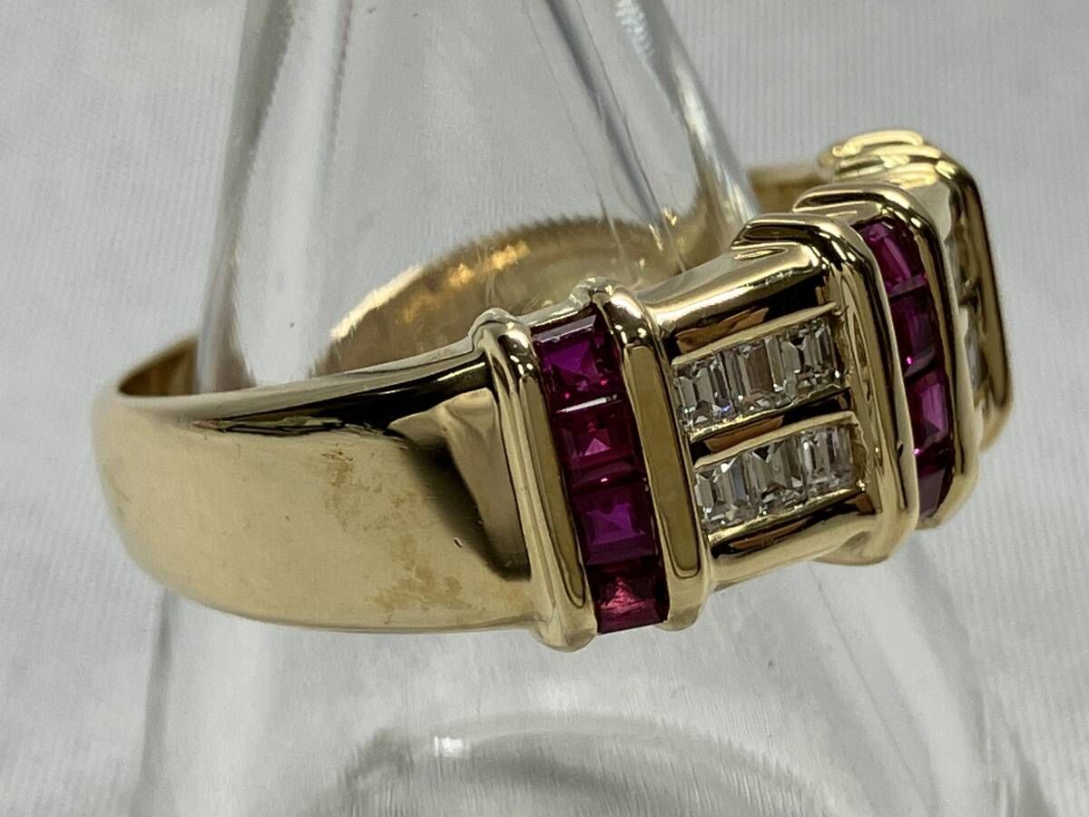 K 18 天然ルビー 天然ダイヤモンド 検査石のみ 0.62 0.30の刻印あり リング 15.5号 6.6 g ソーティング付 平打ち