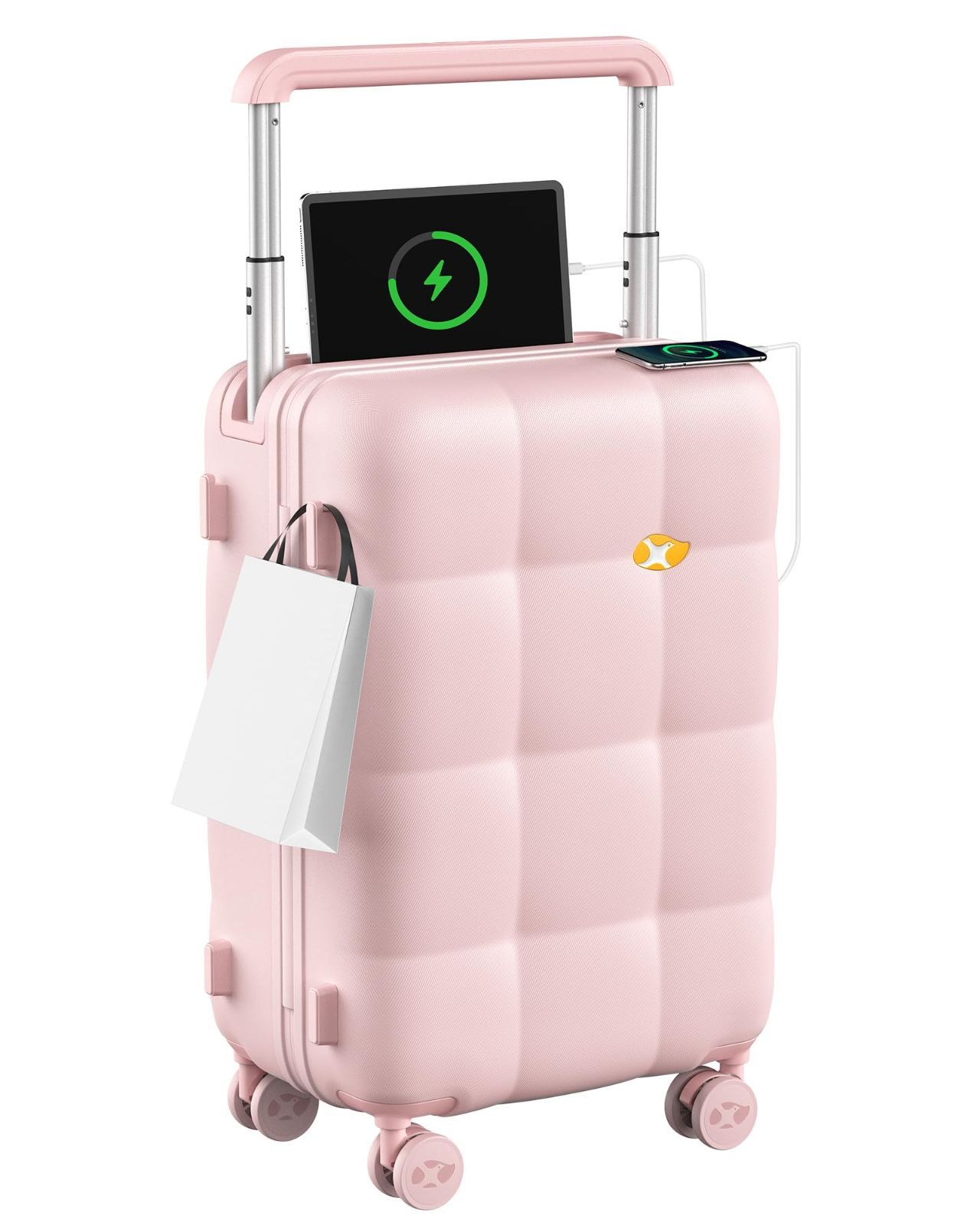 [MGOB] スーツケース ドイツ製ポリカボネート使用 超軽量 耐衝撃 静音 360度回転キャスター・TSAロック搭載 キャリーケース PC Sサイズ 機内持ち込み ワイドバーデザイン スーツケース 頑丈 旅行 ビジネス 出張 USB Type-C ポート付き YKKファスナー (ピンク 20サイズ 3泊4日 45L)