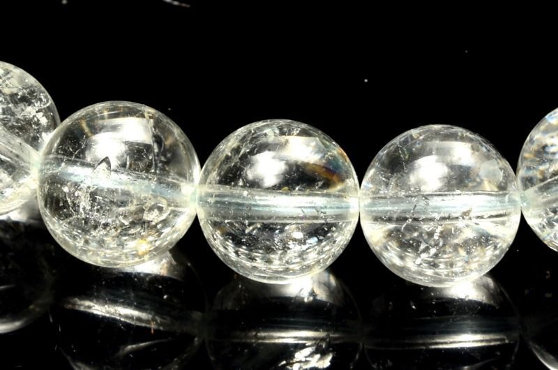 稀に虹入りの珠や、白雲母(モスコバイト)やトルマリンなどの内包物も見られます。