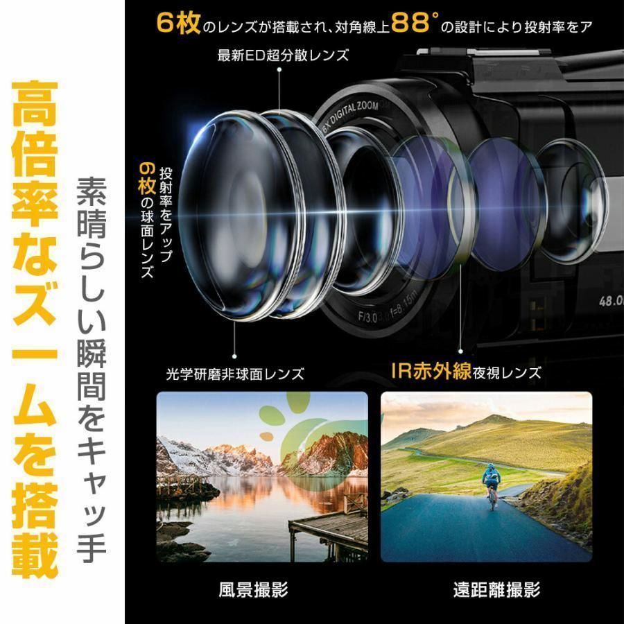 ビデオカメラ 5 K センサー デジタルカメラ WiFi機能 16倍ズーム 4800万画素 高画質 手振れ補正 IPS大画面 防塵 軽量 修学 旅行