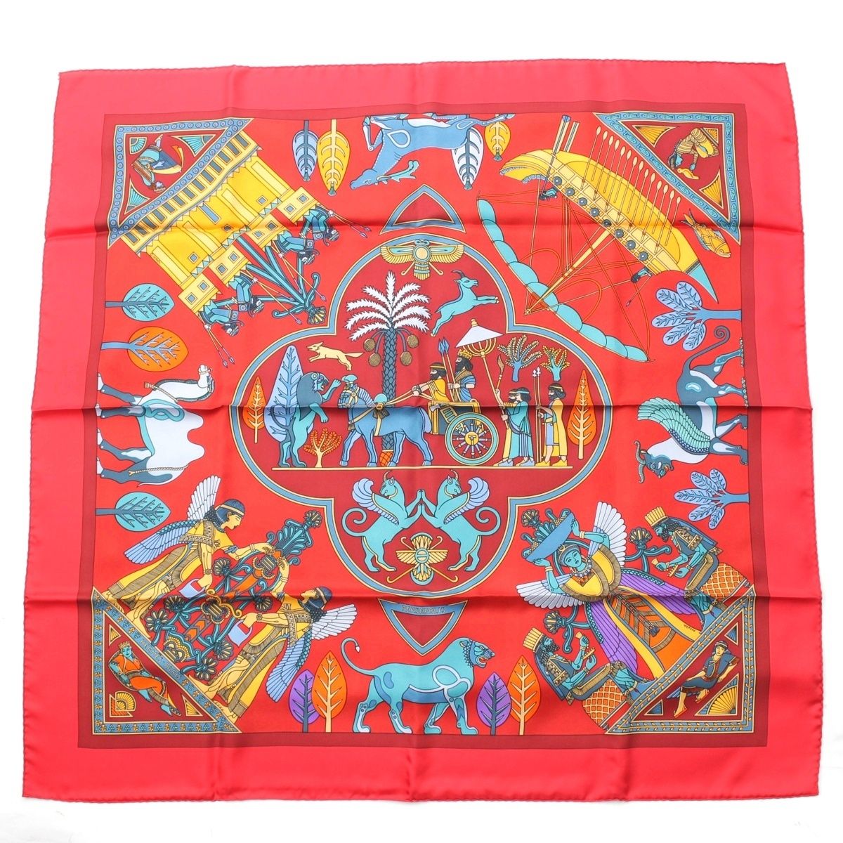 エルメス カレ90 PERSEPOLIS ペルシャの都市 シルク スカーフ レッド