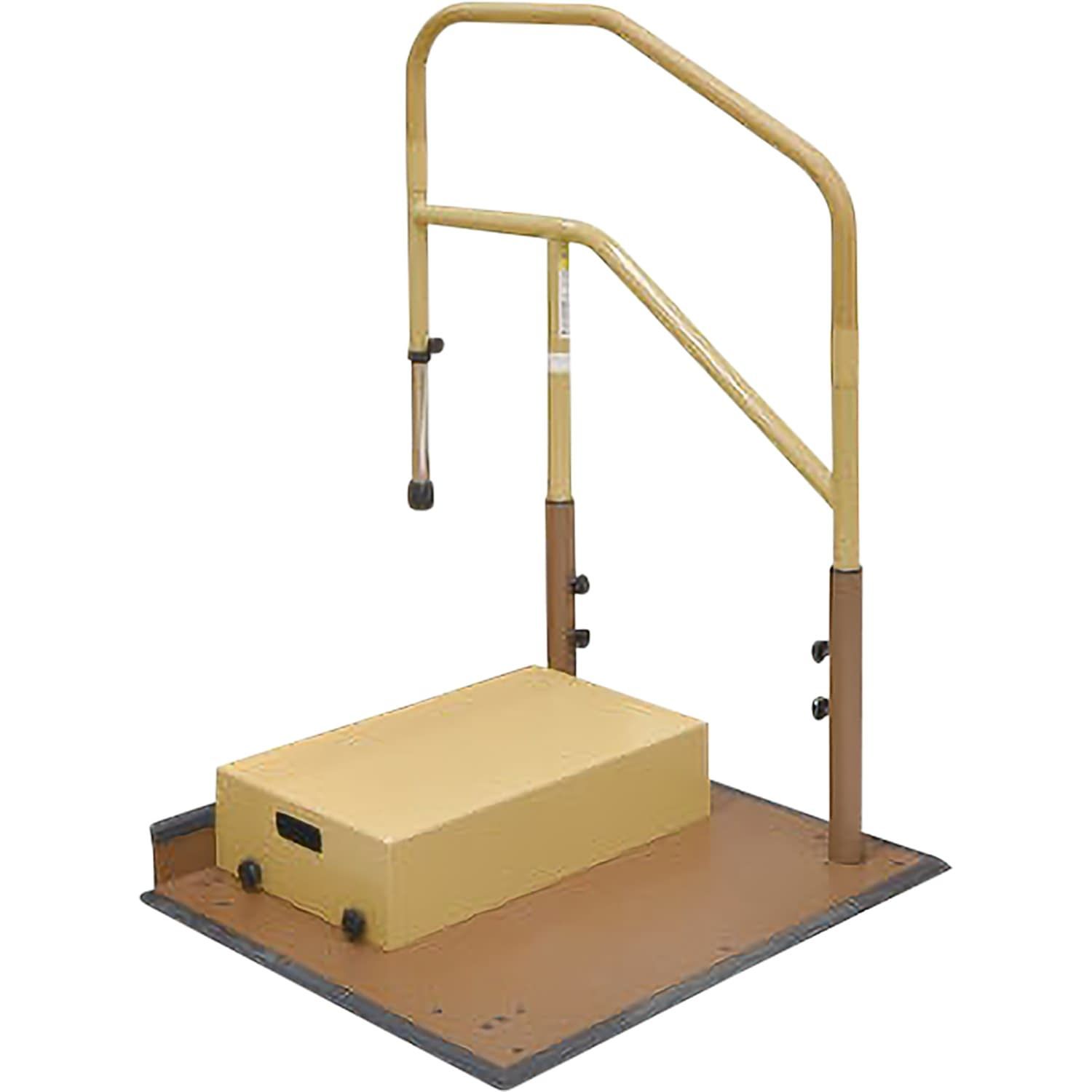 ●材質:手すり=(被膜)ウッドパウダー混合半硬質樹脂(芯材)アルミ、手すりフレーム=スチール焼付塗装、支柱・ベース=スチール焼付塗装、踏み台=スチール焼付塗装