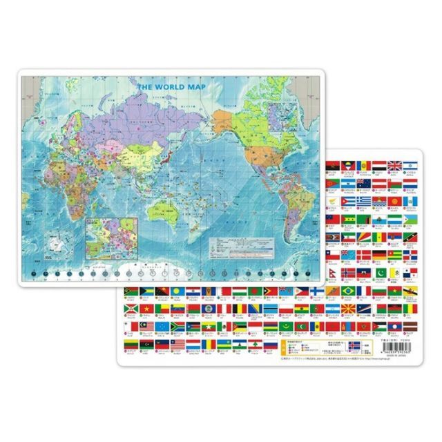 裏面には各国の国旗、国名、首都名をを掲載しており、地図面に記載されている番号と対応しています。