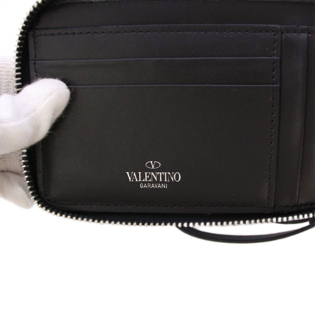 ヴァレンティノ ガラヴァーニ VALENTINO GARAVANI VLTN ストラップ付き財布 二つ折り財布 コンパクトウォレット ラウンドファスナー ロゴ プリント バイ 黒 ブラック 白 ホワイト BB