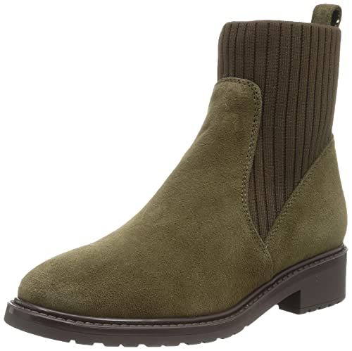 [ウニサ] ファッションブーツ リブニットショートブーツ カーキ 24.5 cm 2E