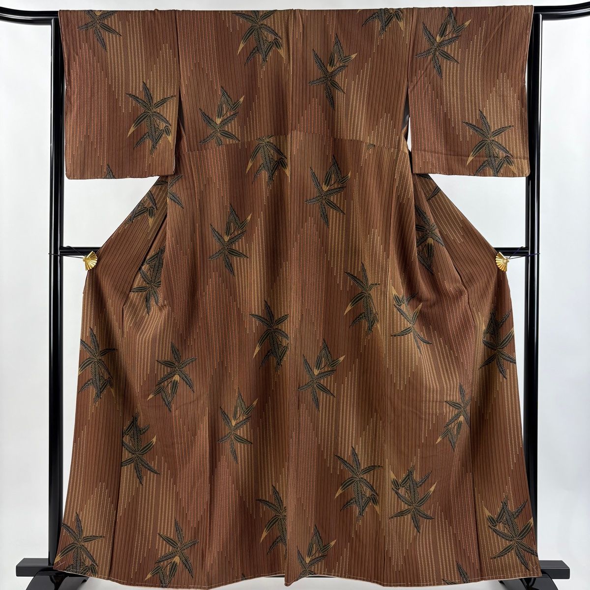小紋 身丈159 cm 裄丈65.5 M 袷 笹 縦縞模様 茶色 正絹 秀品