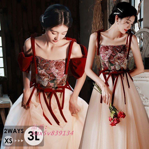 ロングドレス 2WAYS 大人 ピアノ 発表会 演奏会 結婚式 母親 ドレス 演奏会用ドレス ロング マキシ丈 大きいサイズ 小さいサイズ 披露宴 レディース 演奏会ドレス ピアノ発表会 韓国 イブニングドレス パーティードレス ワンピース 二次会 花嫁 ワインレッド N1JC