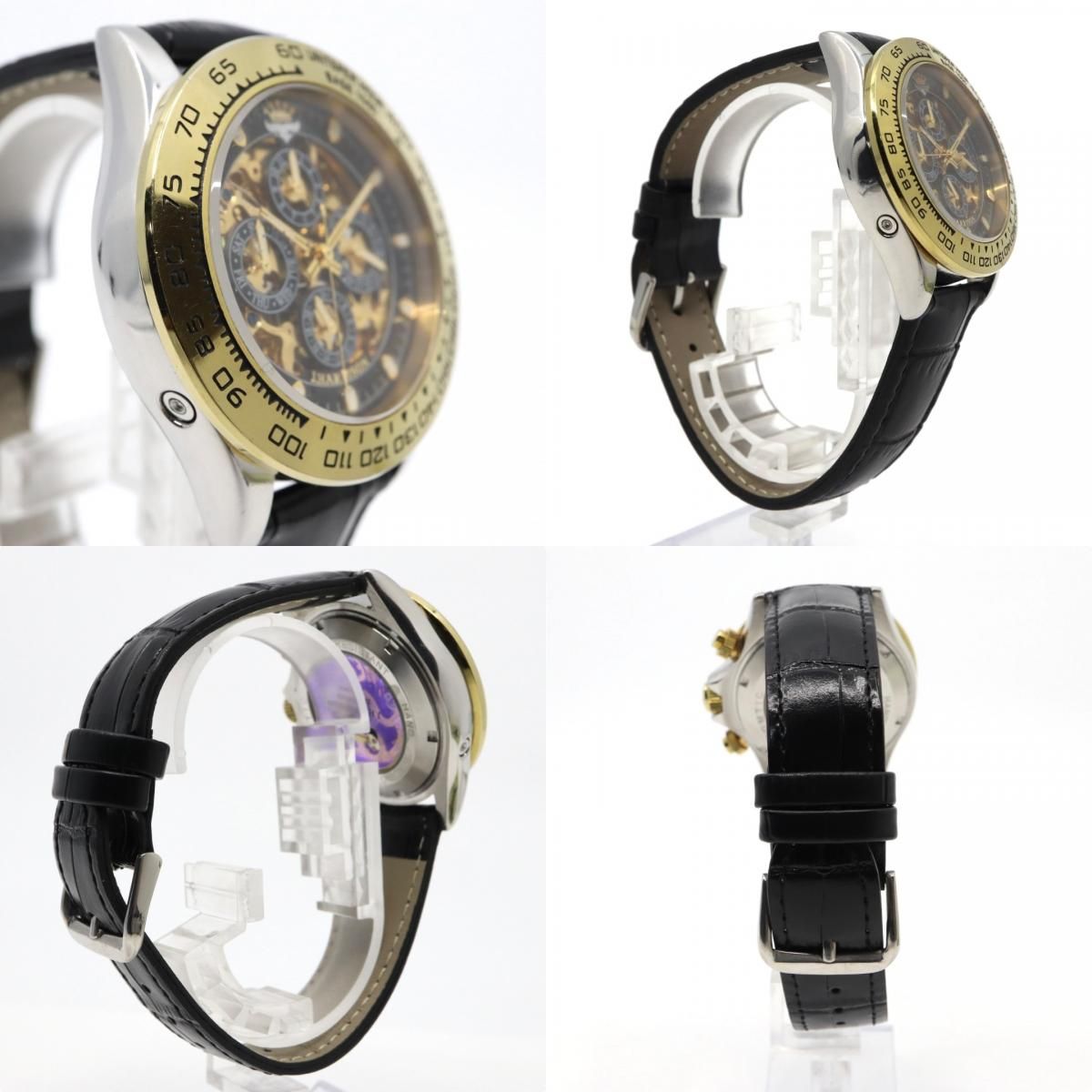 ジョン ハリソン J.Harrison 腕時計 JH-003 C スケルトン 自動巻き ゴールド ブラック メンズ レザーベルト アナログ タキメーターベゼル シースルーバック クラシック ゴージャスデザイン G 2