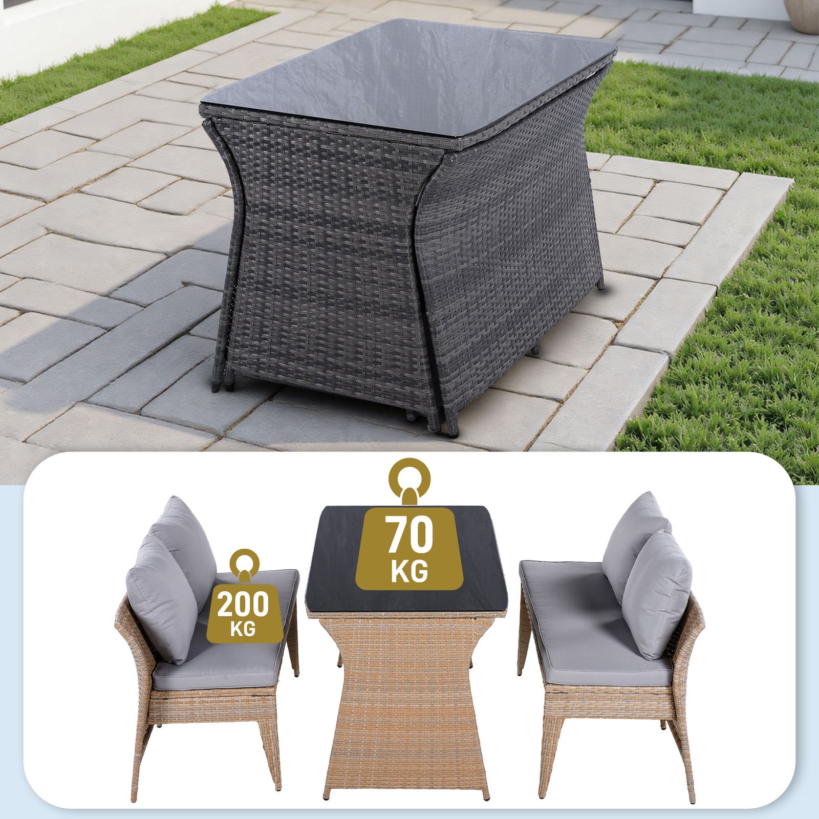 15 割 4人掛け ガーデン テーブル 3点セット ラタン調 ガーデンファニチャー ベランダテーブル ガーデンテーブル ガーデンチェアー コンパクト 屋外家具 グレー ベージュ