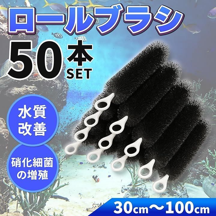 Lezalic ロールフィルター 50本セット ブラック 濾過 ろ過 大型 水槽 ロールブラシ 池 錦鯉 汚れ除去 外部 ろ材 50 cm