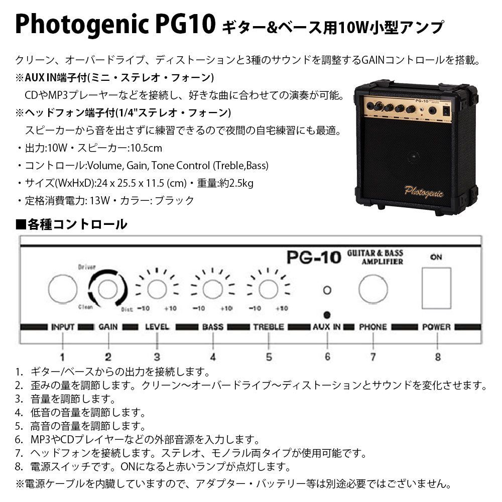 ベース本体・アンプともに安心の1年間メーカー保証が付きます。