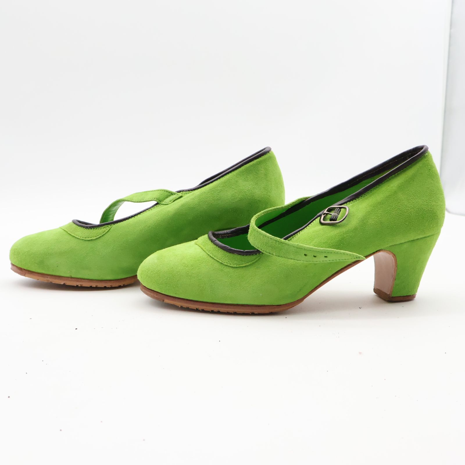 スペイン製 フラメンコ衣装 36 1 2 amaya アマジャ シューズ 靴 ヒール グリーン 黄緑 スウェード 釘あり クギ ベルト ダンス用 レディース 女性 発表会