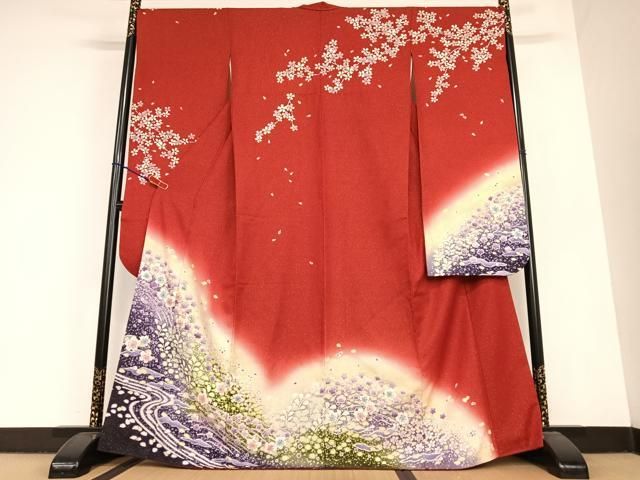 平和屋着物 豪華振袖 絞り 流水舞花文 暈し染め 金通し地 正絹 zg