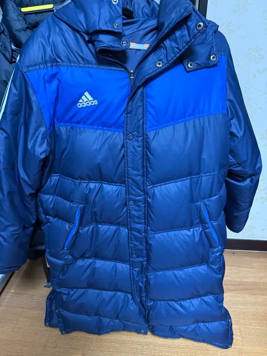 ネイビー、青のツートンカラー adidas ダウンジャケット ロング丈です。バスト部分にadidas ロゴが鮮明に施されています。ヒップを覆う丈なので、真冬にも暖かく着用できます。コメントがなければ、そのまま安全決済をお願いいたします!