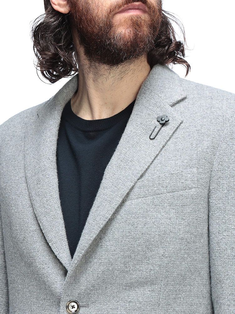 LARDINI(ラルディーニ)はイタリア中央東部のアドリア海岸に面するAnconaで創立したメンズを中心としたクロージングブランドです。LARDINIのジャケットは、ウール、シルク、カシミヤを贅沢にブレンドしたブークレ素材が特徴です。立体感のあるブークレ織りの豊かな表情と、カシミヤの極上の柔らかさを兼ね備えた生地が、見た目にも温かく、柔らかな着心地を実現。ラルディーニらしい仕立ての良さとモダンなシルエットが、装いに洗練されたラグジュアリー感を添える一着です。