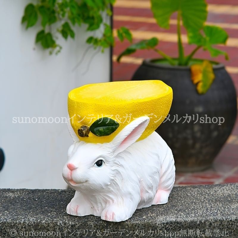 Sunoumoon 海外インテリア shop でご紹介するこちらのガーデンオーナメントは、輪切りのレモンがちょこんと載ったかわいいウサギをモチーフにしています。