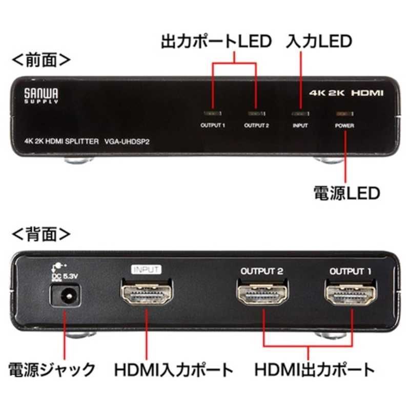 サンワサプライ 4K2K対応HDMI分配器 2分配 VGA-UHDSP 2