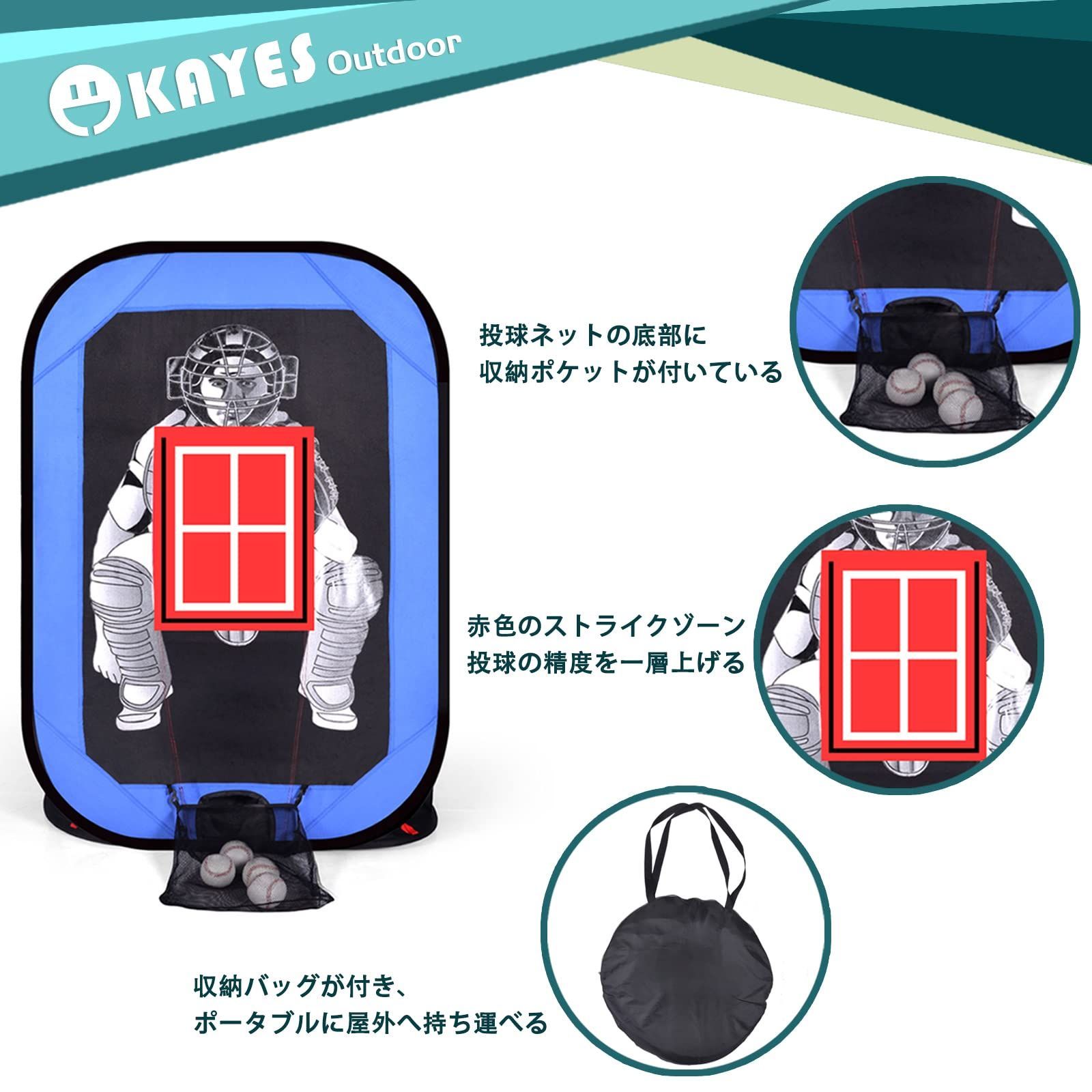 野球ネット ピッチングネット 投球ネット 野球練習ネット 投手用 練習用 ストラックアウト ポップアップ式 折り畳み式 ストライクゾーン付き 収納バッグ付き