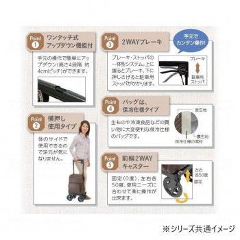アルミフレーム、ストッパーで停止中も安心、便利な後ポケット付、便利な傘ホルダー付、キルティング