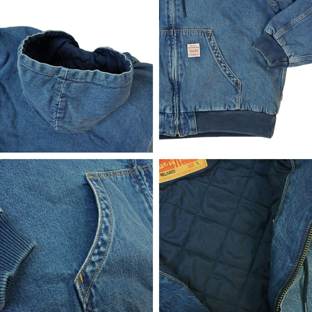 リーバイス LEVI S デニムジャケットWORKWEAR POTRERO デニム ジップアップフーディーMEDIUM INDIGO ミディアムインディゴキルティング ウォッシュ 中綿 リブジージャン Gジャン アウター 上着 ジェンダーレス ジェンダーフリー