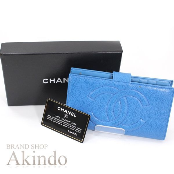 シャネル 長財布 二つ折り ココマーク ヴィンテージ キャビアスキン 青 ブルー がま口小銭入れ レザー 2つ折りウォレット レディース A 01429 CHANEL 本革 ギフト サイフ 財布 女性 便利 ブランド ビンテージ