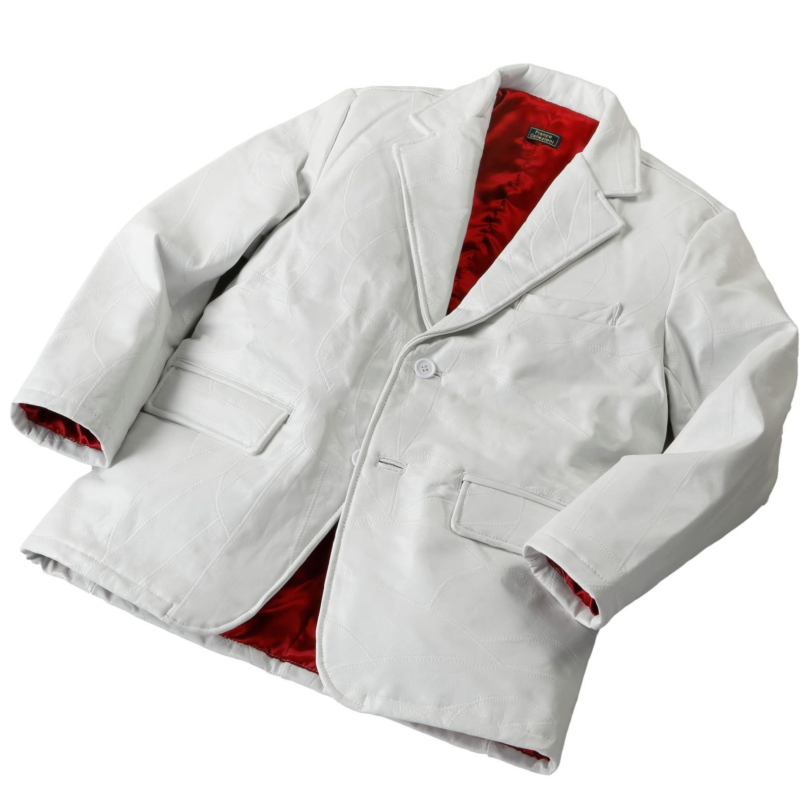 M_ホワイト ラム革 パッチワーク テーラードジャケット Mサイズ ホワイト 白 カジュアル 温かい アウター ジャンパー メンズ 41191-M