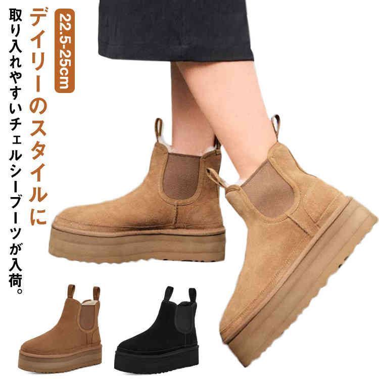 ヒール5 cm ブーツ チェルシー レディース 厚底 本革 プラットフォーム サイドゴアブーツ 厚底ブーツ シープスキン 冬靴 ボア ふわふわ 裏起毛 滑り mion 0593215