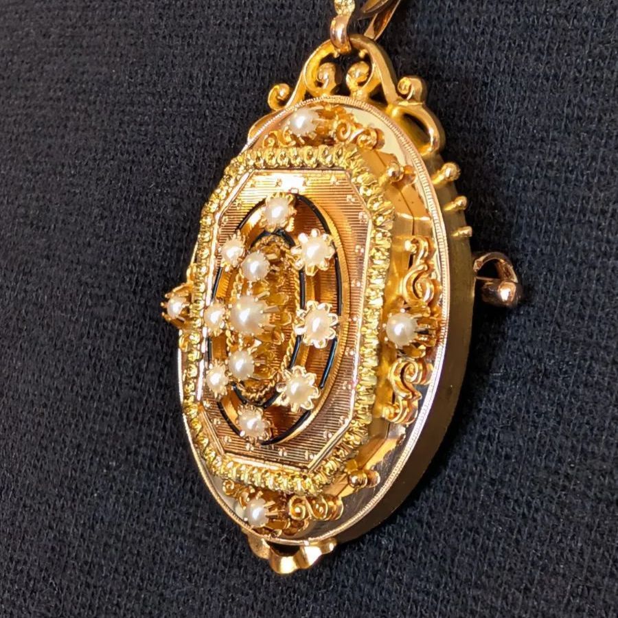 フランスアンティーク カラーゴールドとシードパールのペンダント&ブローチです。時代は1880年頃、ナポレオン3世時代のスタイルです。鑑別書が付属します。