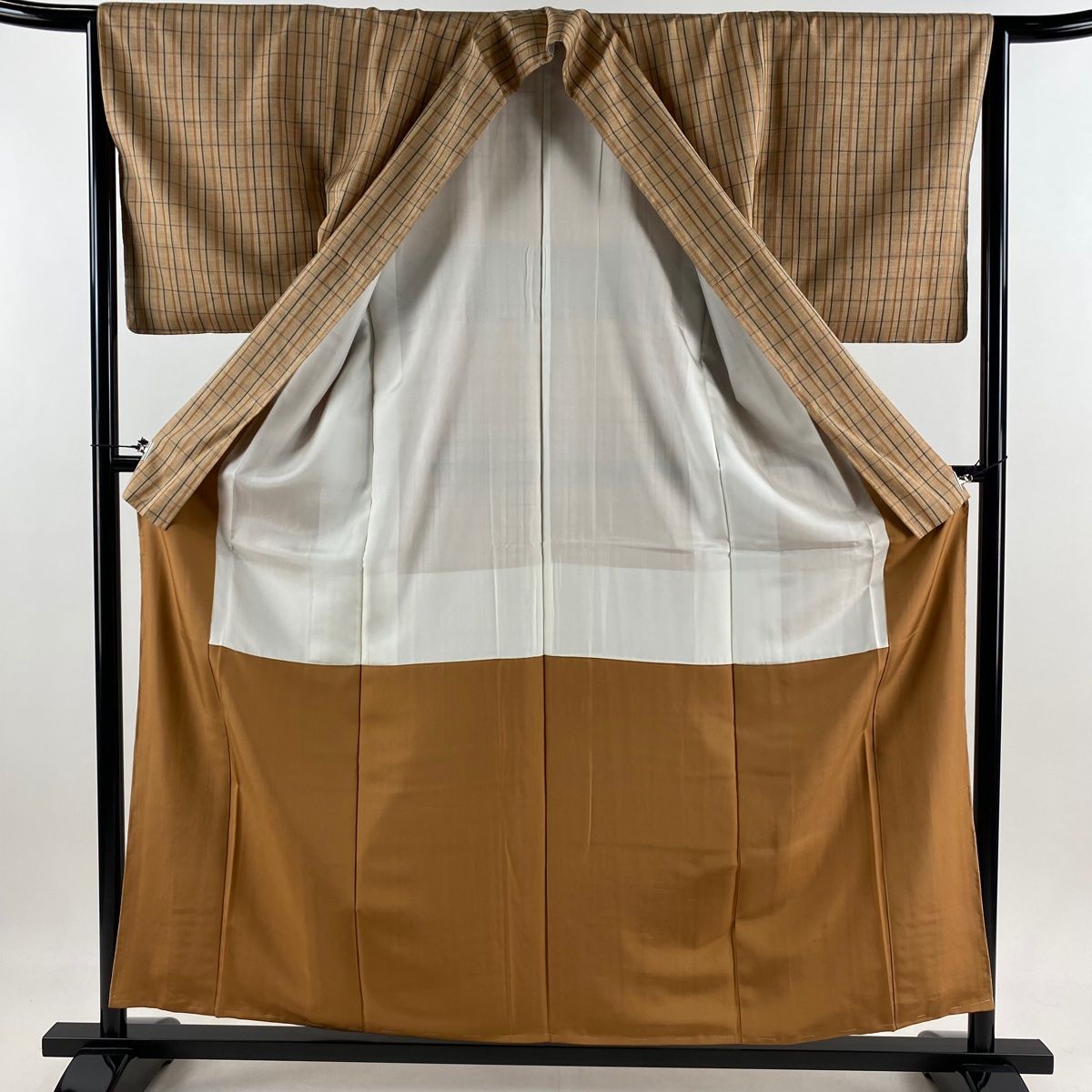 紬 身丈157.5 cm 裄丈64 M 袷 格子 薄オレンジ 正絹 秀品