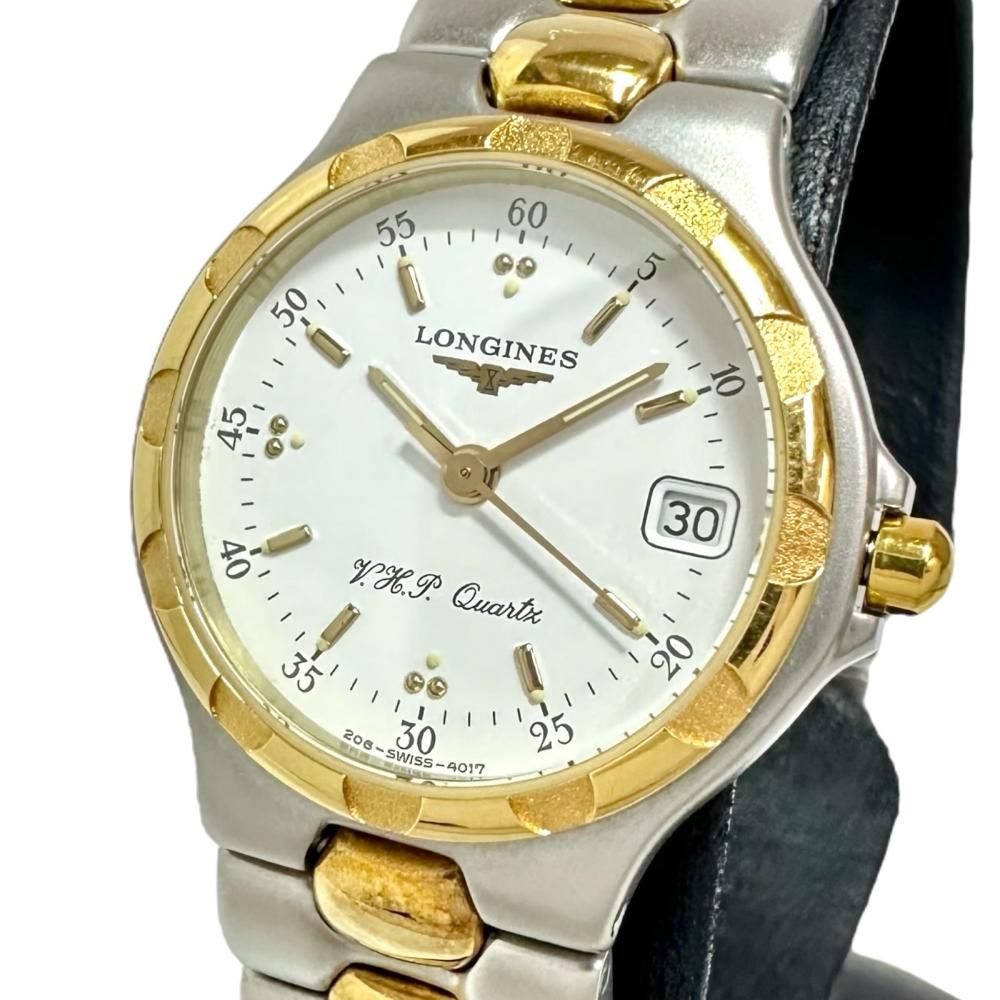 ロンジン コンクエスト 4017 腕時計 ステンレススチール GP クオーツ 白文字盤 レディース GD