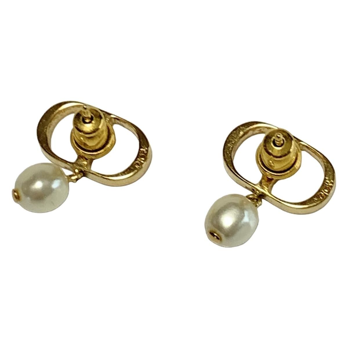 DIOR ChristianDior ディオール クリスチャンディオール ピアス トライバル ゴールド×白 CDモチーフ