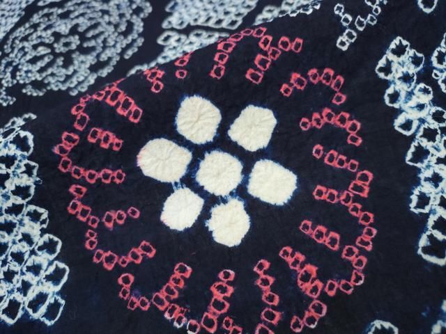 平和屋着物∴夏物 浴衣 有松鳴海絞り 亀甲舞菊文 綿 ng