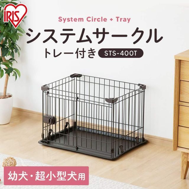 サイズ:60Lx45Wx41Hcm◆商品名:アイリスオーヤマシステムサークルトレー付きSTS-400Tブラウン超小型犬用幅60×奥行45×高さ41cm