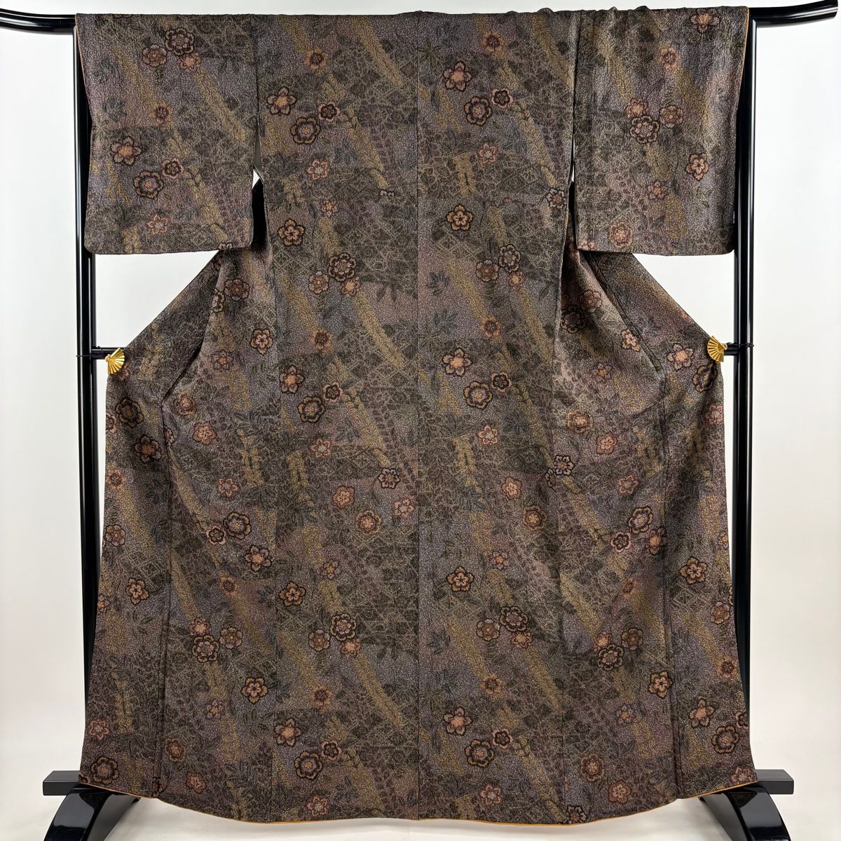 小紋 身丈164.5 cm 裄丈67 M 袷 名古屋帯セット 草花 菱 箔通し 茶紫 正絹 秀品