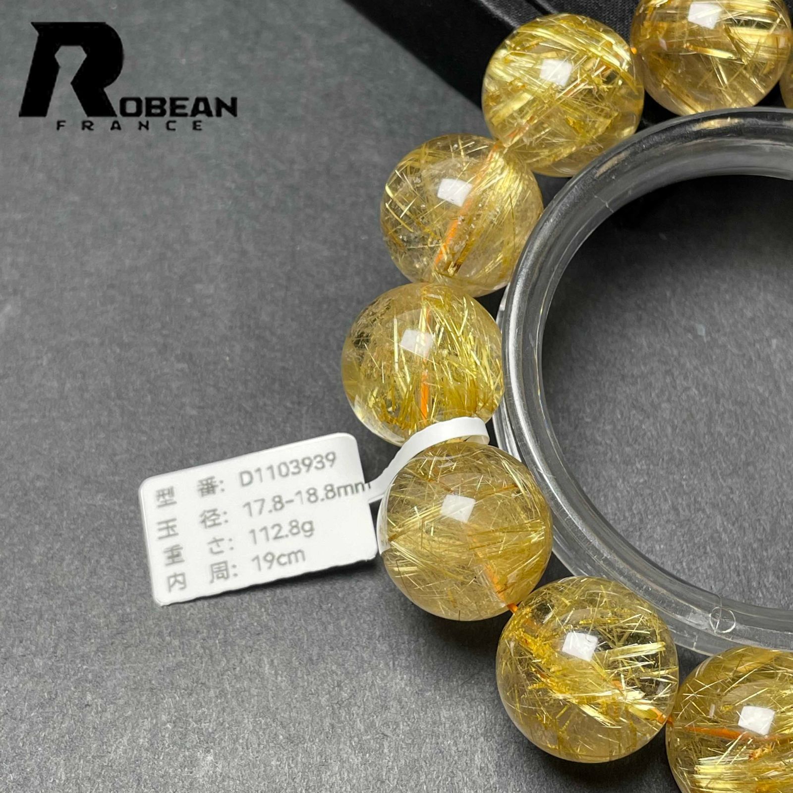 EU製 定価215万円 ROBEAN ! 満針ルチルクォーツ ブレスレット パワーストーン 天然石 金運 お守り プレゼント 17.8-18.8 mm