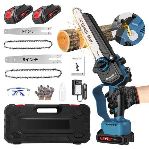 チェーンソー充電式チェーンソー 最強 9 m sブラシレスモーター 8インチ 6インチ 切断径15 20 cm 自動給油ハンディチェーンソー 2 0 Ahバッテリー電動チェーンソー軽量強力ミニ小