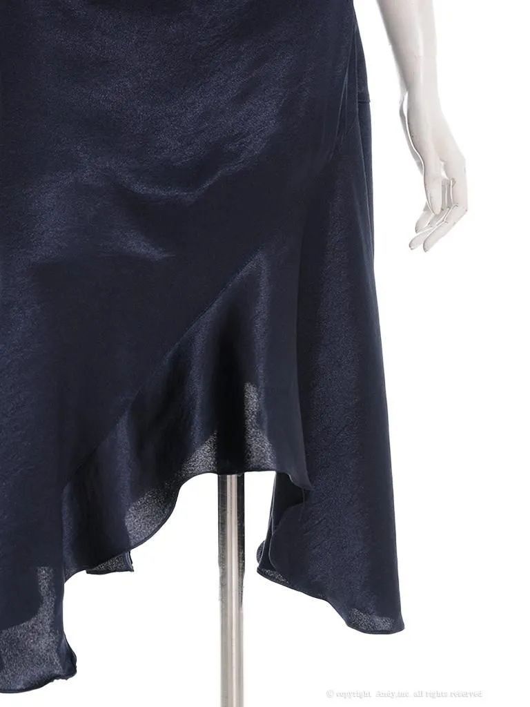 【ANDY/アンディ】フロントジップ/ ストレッチサテン/ オフショル/ キャミソール/ シンプル/ ワンカラー/ アシンメトリー/ フリル/ フレア/ ミディアムドレス/ キャバドレス[OF05] [ON2984-BE-2509]