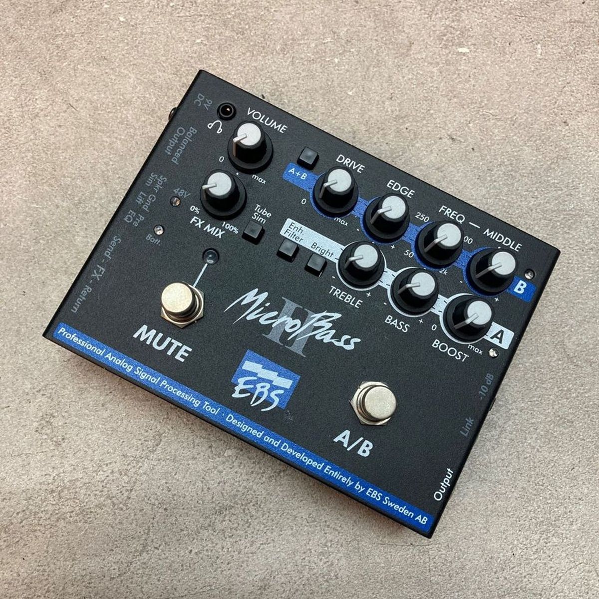 ・EBSマイクロベースIIは、多機能なアウトボードベースプリアンプで、DIとしても有能です。トーンコントロールはA/Bの2タイプ、クラスAチューブシミュレーションを持ち、XLRバランスアウトにはキャビネットシミュレーションも装備しています。