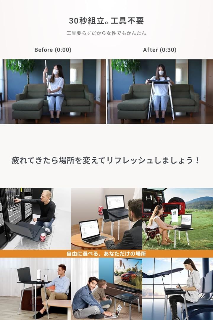 多目的スタンドは、他の扱いにくい膝上製品に比べて、ラップトップでの作業に非常に実用的です。