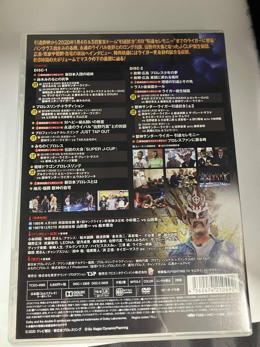 獣神サンダー ライガー 引退記念 DVD 獣神伝説 30年間の激選名勝負集 ‘89 ’19 ブックレット汚れ有 新日本プロレスリング 新日