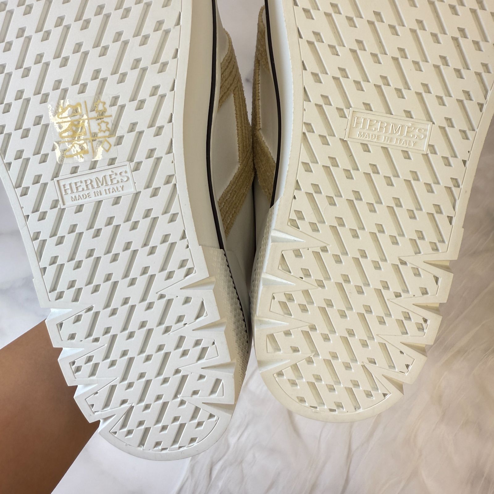鑑定済み エルメス デア 38 24.5 cm程度 ホワイト エクリュ カーフ シープスキン ボア スニーカー Hロゴ