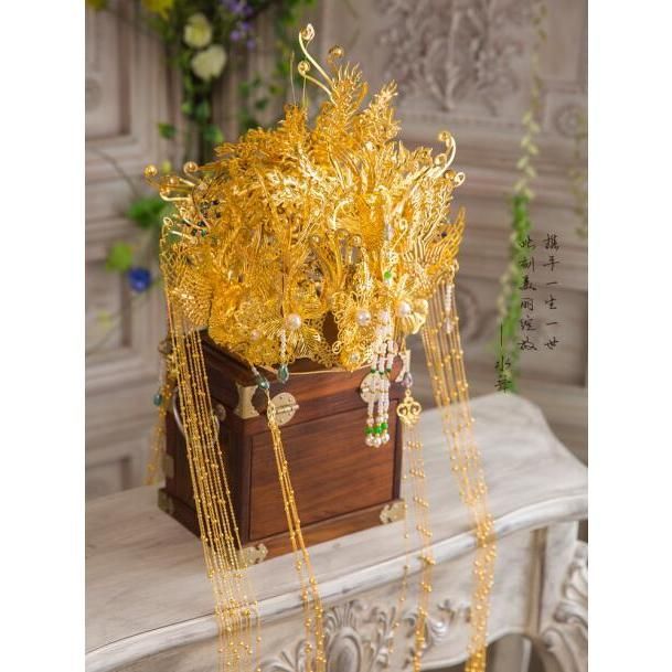 華流コスプレ用髪飾り 王冠 漢服用ヘア 舞台撮影グッズ フリンジかんざしティアラ 皇后風王冠帽子 チャイナ風髪飾り 結