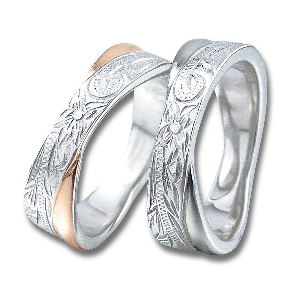 アロハロカヒ ハワイアンジュエリー ハワイアン ペアリング 指輪 ステンレス サージカルステンレス クロス スクロール プルメリア ローズゴールド ステンレスシルバー ローズゴールド8号 - ステンレスシルバー19号