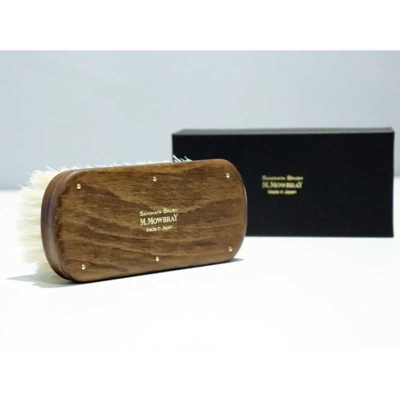 豚毛ブラシは一つの毛穴に対する毛量が多く、1本1本のコシが強いため艶出しに特化したブラシです。使い込み、ブラシの毛にクリームが浸透していくにつれ靴にツヤが出しやすくなります。手植えブラシは機械植えに比べて毛抜けが少ないので、毛が育ってからも長くご使用いただけます。