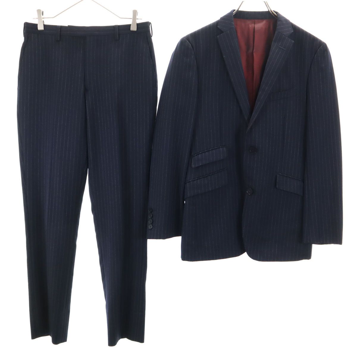 バーバリーブラックレーベル 日本製 ウール ストライプ柄 スーツ 上下 セットアップ 38R ネイビー BURBERRY BLACK LABEL 三陽商会 メンズ