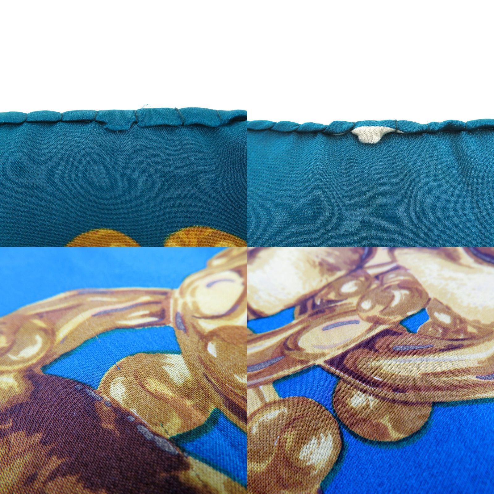 CHANEL シャネル スカーフ カメリア柄 花柄 ブルーxゴールド シルク 85 cm イタリア製 rk 10341