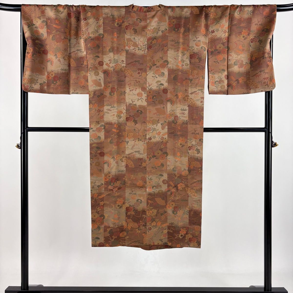 道行 身丈129.5 cm 裄丈72 L 和装コート 千代田衿 扇 草花 赤茶 正絹
