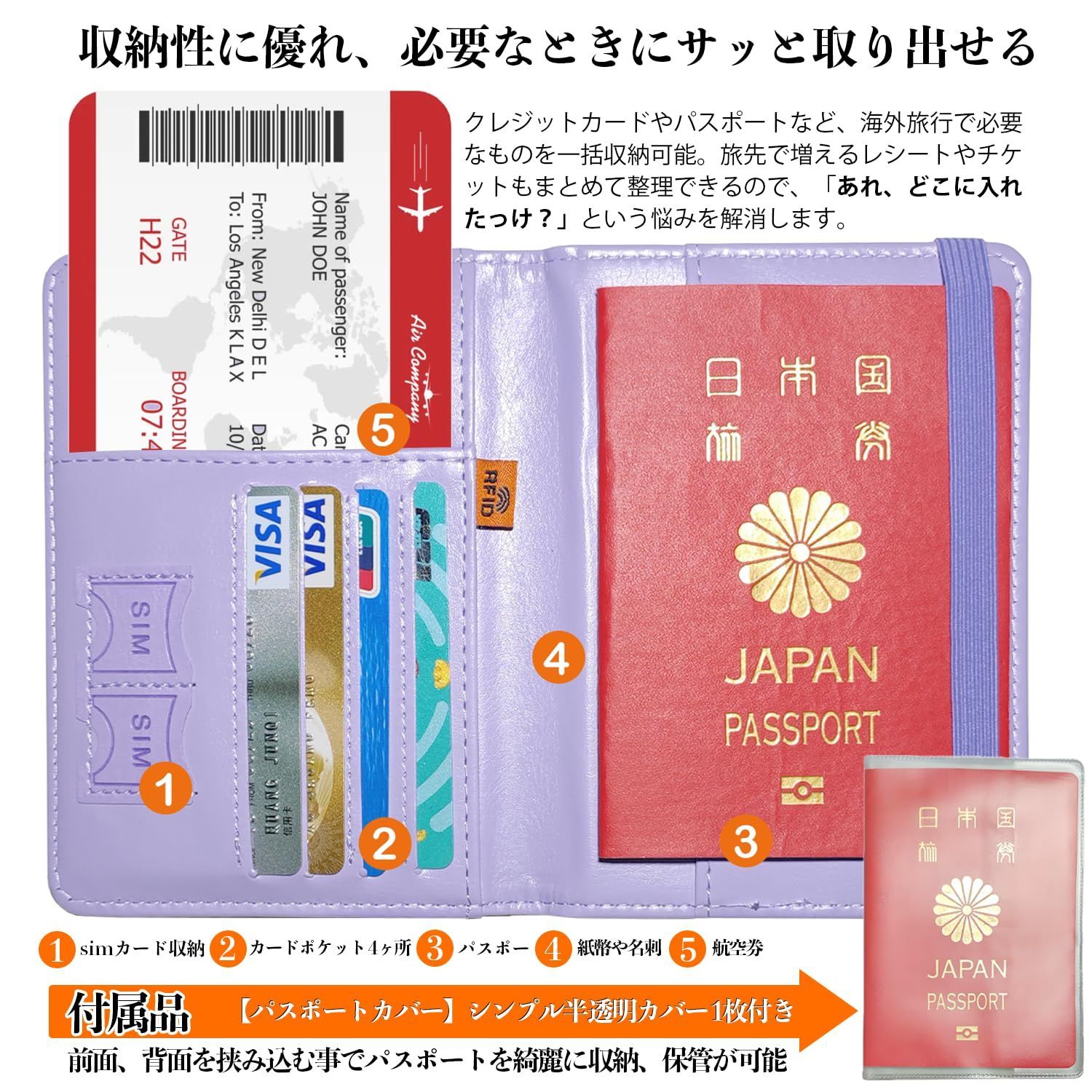 おしゃれ 海外旅行 コンパクト 軽量 旅行用品 PUレザー ラベルウォレット 透明パスポートカバー付き カードケース パスポート パープル 収納ポケット パスポートカバー スキミング防止 パスポートケース 擬革 Hueapion